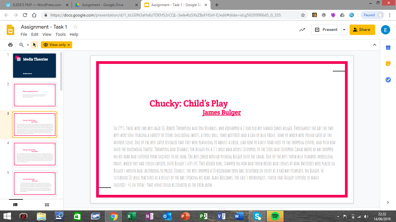 I really enjoyed researching about the murder of James Bulger. To begin with I didn’t know anything about him or anything about what how he died so finding that information out was really interesting for me.